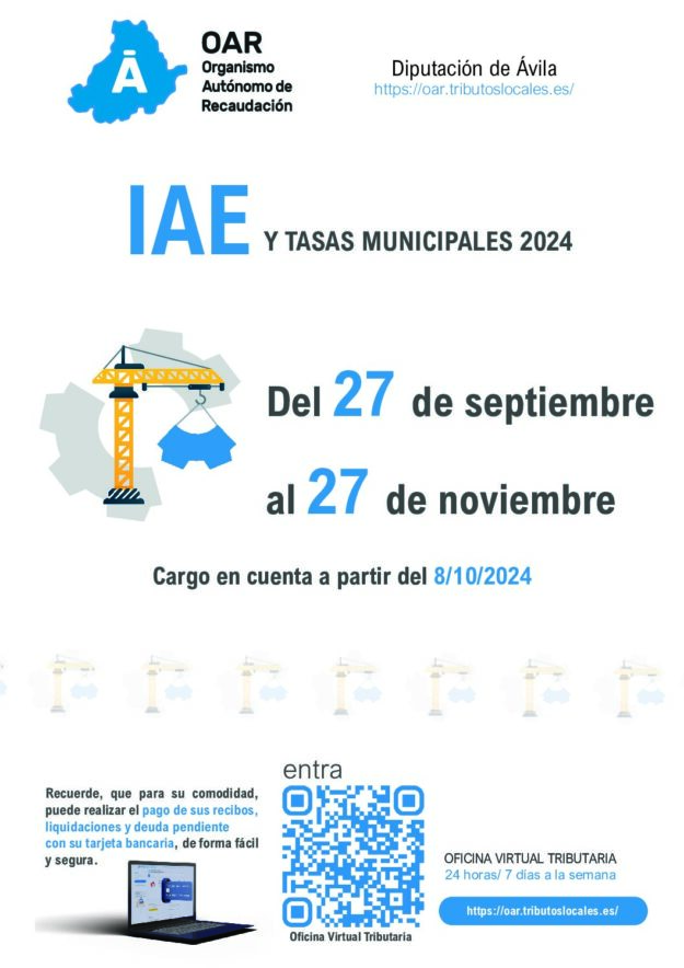 Desde el día 27 de septiembre al 27 de noviembre, se podrá realizar el pago voluntario de las correspondientes Tasas Municipales.