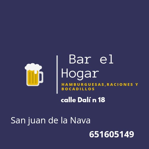 Descripción Bar el Hogar Comida tradicional casera: Raciones Hamburguesas Bocadillos Teléfonos: 651605149 Donde estamos c/ Dalí, nº 18Imágenes