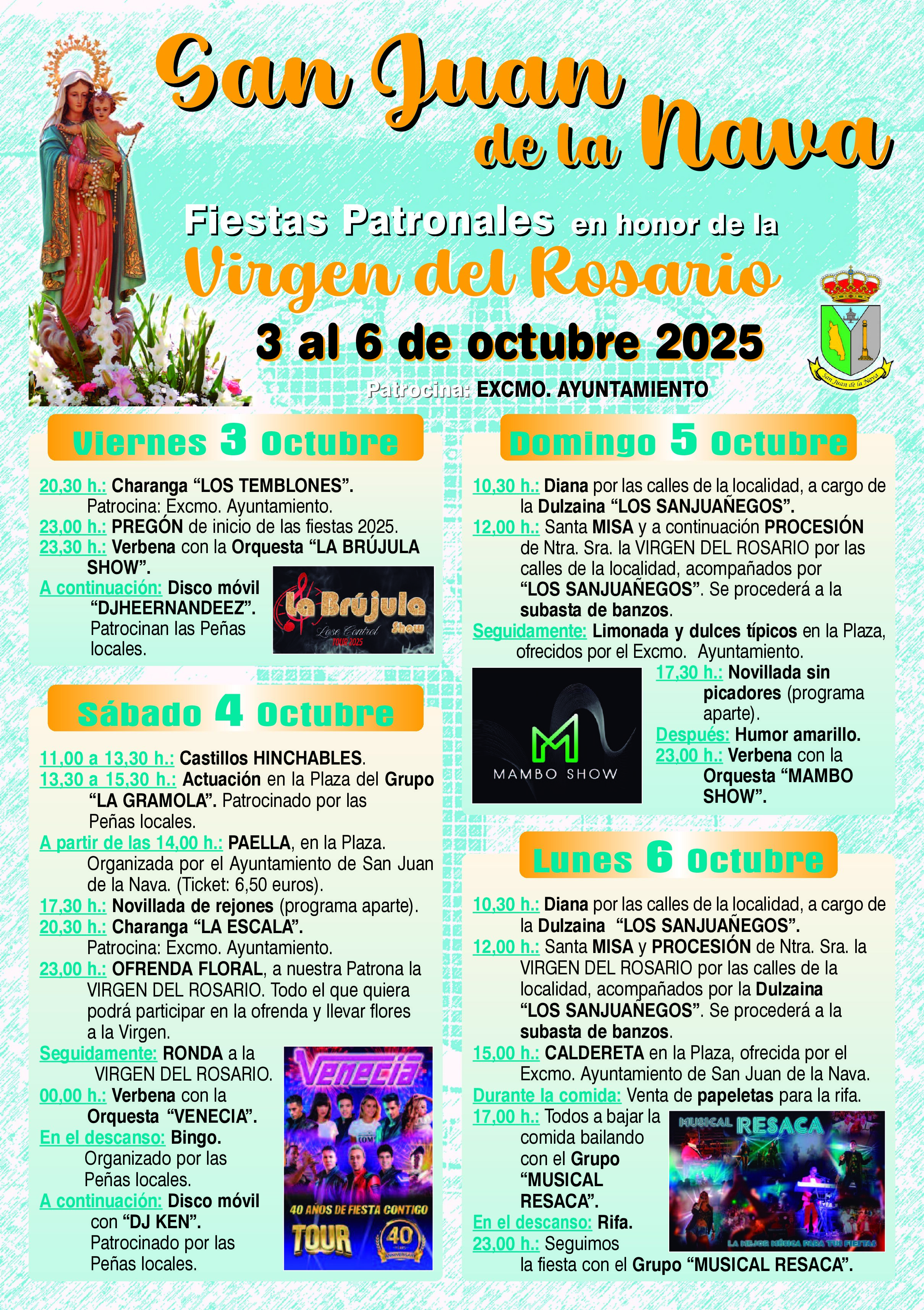 Aquí os dejamos el cartel de fiestas de este año en honor a nuestra Virgen del Rosario. Os deseamos unas felices fiestas.